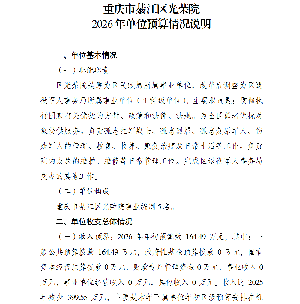 重慶市綦江區光榮院_2026年單位預算情況說明