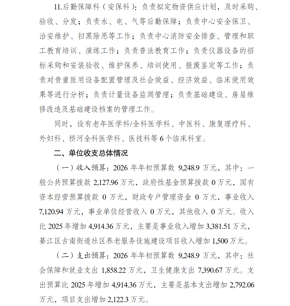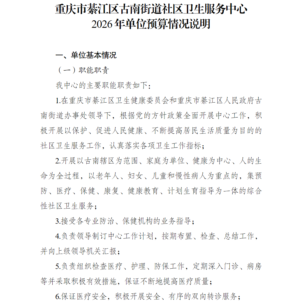 重慶市綦江區(qū)古南街道社區(qū)衛(wèi)生服務(wù)中心2026預(yù)算