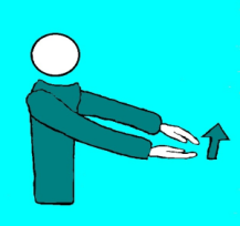 執裁手勢:兩臂前伸,掌心相對,略微上抬。